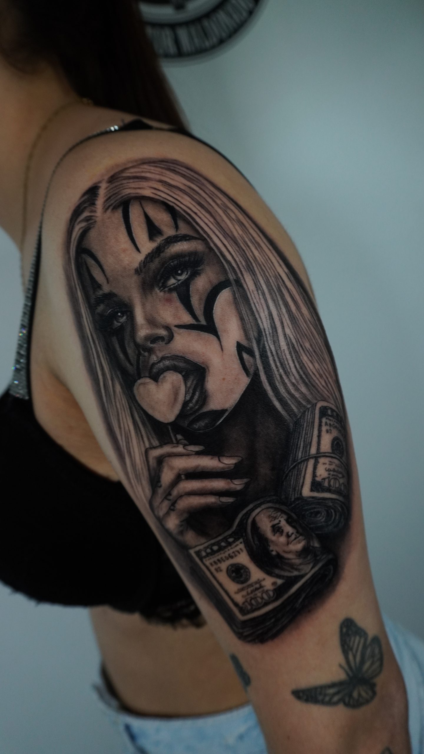 Tatuaje realista, tatuajes a color, fineline, black&grey, blackwork, neotradicional, old school, concept art ( son estilos de tatuajes) los más demandados son realista (black&grey) y fineline.