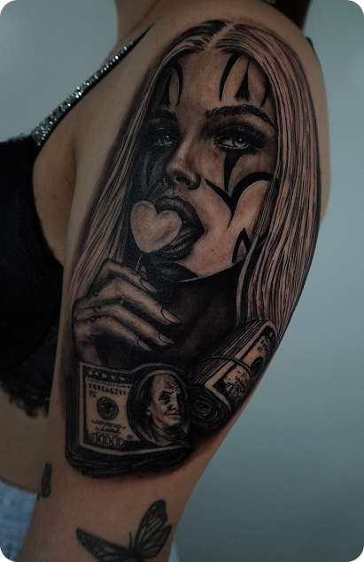 Durante años tatué en casa, perfeccionando mi técnica y desarrollando un estilo propio centrado en el realismo y el detalle. En 2025 di un paso clave: montar mi propia cabina profesional dentro de la peluquería Il Salone, en Roquetas de Mar, donde actualmente trabajo.